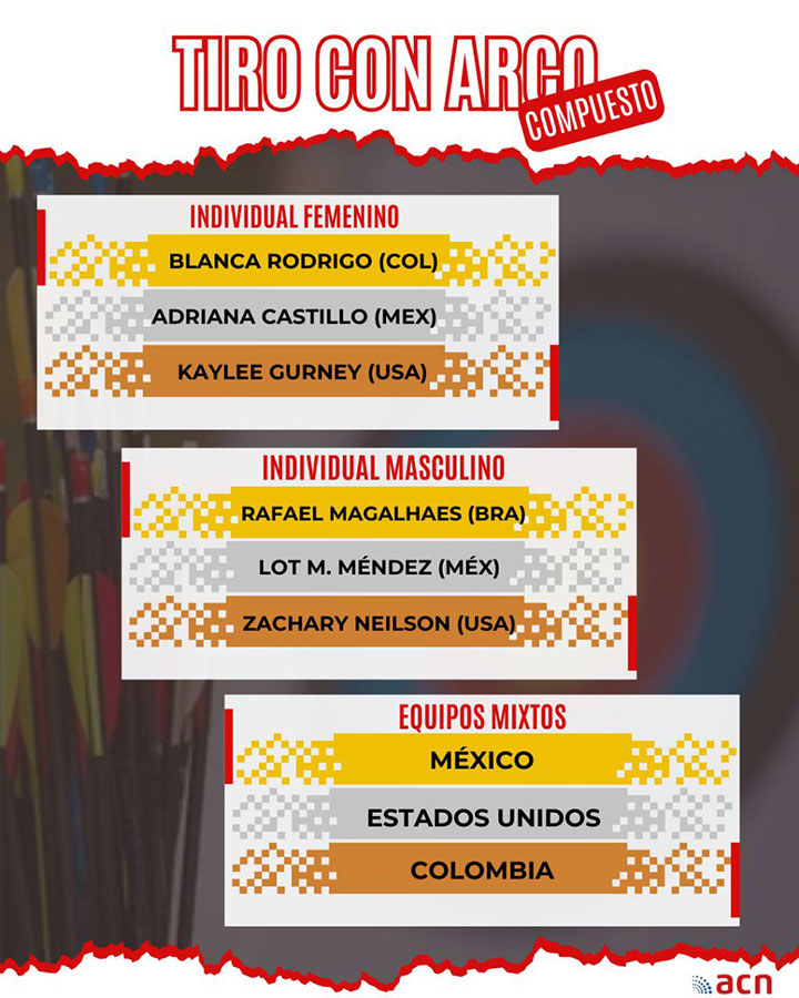 Las delegaciones de Brasil, Colombia y México resultaron las de mayor cúmulo de medallas, con cuatro, y en el caso de las cuotas doradas, los del gigante sudamericano se adelantaron al resto, con tres galardones.