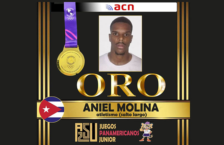 La Habana, 19 ago (ACN) El saltador cubano Aniel Molina se coronó hoy como el nuevo campeón de salto de longitud de los Juegos Panamericanos Júnior Asunción 2025, tras imponerse con un registro de 7.95 metros en una final disputada bajo una persistente lluvia en el Estadio del Parque Olímpico Paraguayo.