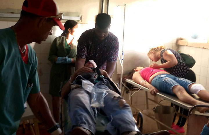 Los lesionados son Sandro Medina Oliveros, de 52 años; Yanet Rodríguez Reyes, de 49, residente en Punta Gorda Arriba; Omar Breffe Blanco, de 58; Lissette Suárez Lobaina, de 29, vecina de Quemado del Negro; y Eroeldis Borges Alpajón, de 23, vecino de Cayo Grande de Yamanigüey.
