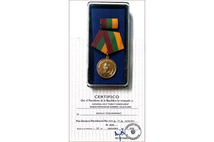 El director de la Sucursal 4312 de Santa Clara, ubicada en la esquina de las calles Cuba y Candelaria, del Banco Popular de Ahorro, Valeri González Fernández, señaló que la medalla Jesús Menéndez recibida por la institución constituye un reconocimiento de gran valor tras años de desarrollo progresivo y sostenible, no solo en las utilidades alcanzadas, sino también en la estabilidad y afiliación de sus trabajadores.