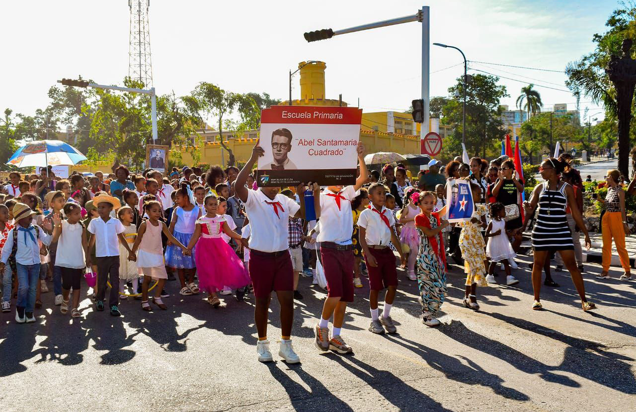 Santiago de Cuba, 28 ene (ACN) Con una fiesta de colores y tradición, niños y jóvenes protagonizaron hoy en la intersección del Paseo Martí y la Avenida Central, de esta ciudad, el desfile por el 173 aniversario del natalicio de José Martí, en el marco del centenario del Comandante en Jefe Fidel Castro Ruz, fiel seguidor de las ideas del Apóstol.