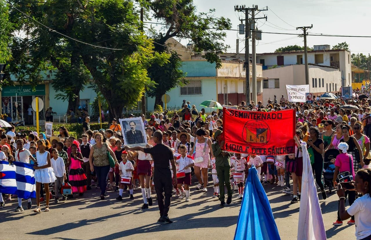 Islaine Vargas Rivera, primera secretaria del comité municipal de la Unión de Jóvenes Comunistas, destacó que el desfile y la tradicional marcha de las antorchas ratifican la continuidad histórica de la Revolución y el papel del ideario martiano en la educación de los jóvenes.