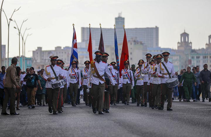 El acto y la marcha desde la Universidad de La Habana hasta el Monumento dedicado a los estudiantes asesinados, y la posterior colocación de ofrendas florales, fueron también una plataforma para alzar la voz en apoyo al heroico pueblo palestino, extendiendo la solidaridad permanente a los estudiantes palestinos que comparten aulas y sueños en Cuba.