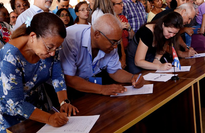 Este movimiento de firmas, que comenzó oficialmente el 19 de abril en Playa Girón con la rúbrica del propio presidente Díaz-Canel y la dirección de la Revolución, se extiende hoy por todos los centros laborales, comunidades e instituciones del país, y ha sido además respaldado por intelectuales, artistas, periodistas y trabajadores de diversos sectores, así como por misiones diplomáticas cubanas en el exterior.