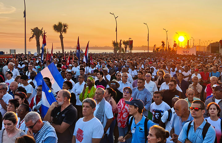 Con la presencia de Miguel Díaz-Canel Bermúdez, Primer Secretario del Comité Central del Partido Comunista de Cuba y Presidente de la República, tiene lugar en la Tribuna Antiimperialista José Martí el acto que reafirma la solidaridad de la isla con el pueblo de Palestina, al que asisten más de 100 mil habaneros.