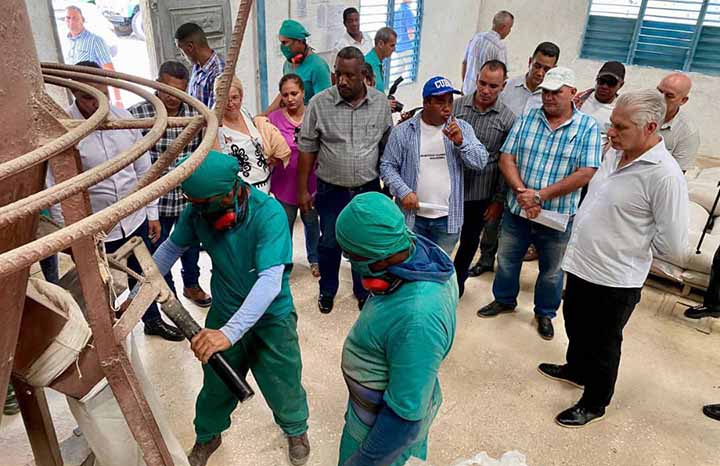 Díaz-Canel significó el ejemplo del central Siboney, en Sibanicú, colectivo que, a pesar de las limitaciones de combustible, ha demostrado que es posible transformar la vida del ingenio, en favor del desarrollo socioeconómico del territorio.