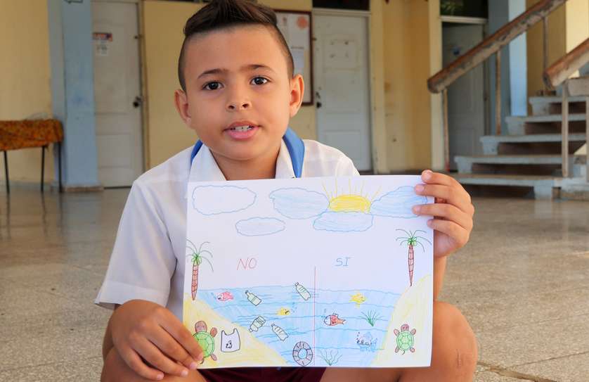 De esa labor conjunta brotó la inspiración de Bryan Michel Escalona Damas, ganador del concurso nacional “Mejor sin plásticos, por el beneficio de nuestros ecosistemas”, al denunciar a través de colores y trazos el daño que causan los desechos al ecosistema marino.