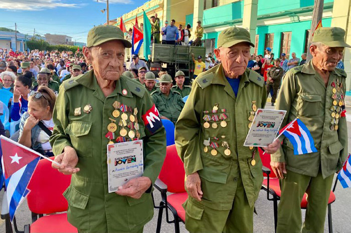 En presencia de Walter Simón Noris, primer secretario del Comité Provincial del Partido Comunista de Cuba, y Jorge Enrique Sutil Sarabia, gobernador en la provincia, recibieron la condición Siempre Joven los combatientes del Ejército Rebelde Luis Portales Milanés, Wilfredo Pérez Rodríguez y Ramiro Rodríguez González, protagonistas de aquella hazaña, junto al líder histórico de la Revolución cubana.