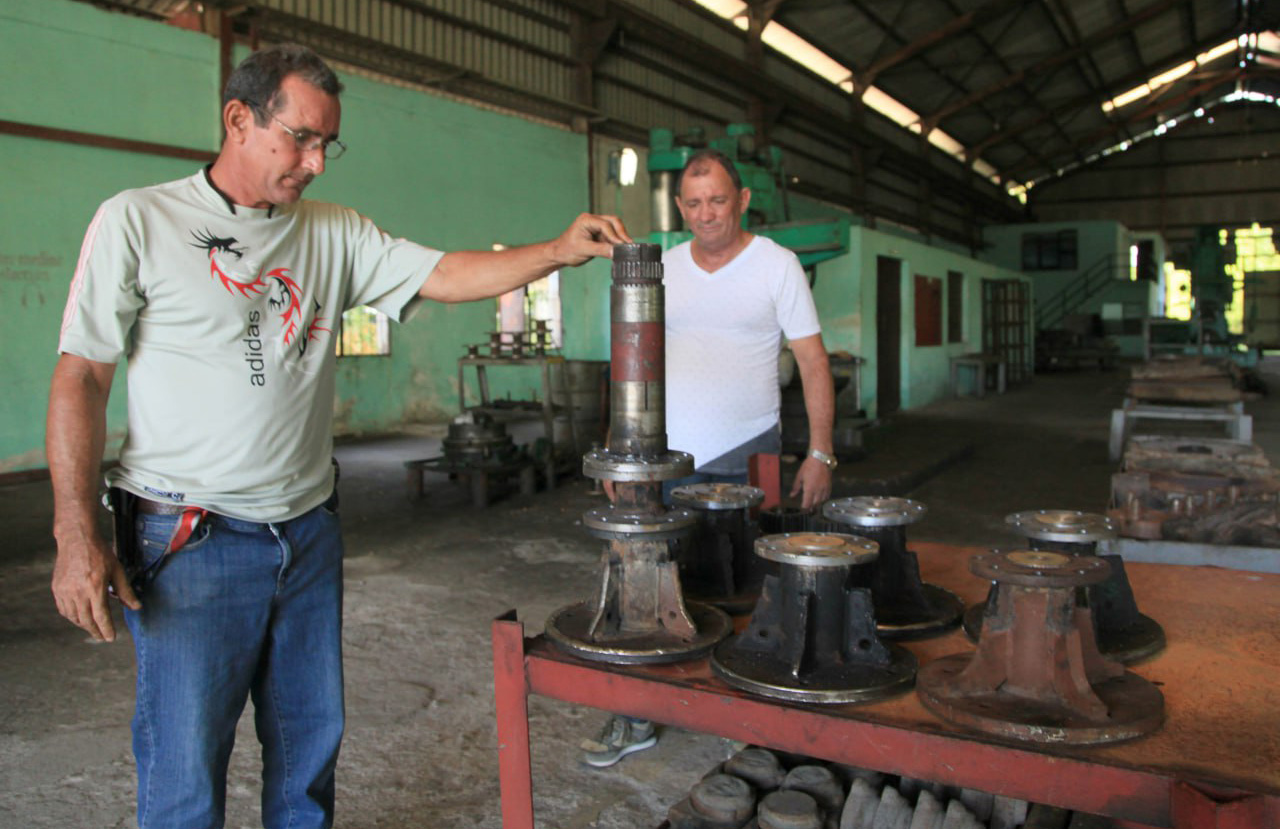 Fausto Dariel Pérez García, al frente de la representación de Azutecnia en Sancti Spíritus, enfatizó en que el colectivo de los talleres -especialistas, torneros, paileros y técnicos- garantizan la continuidad en la fabricación del mecanismo de corte y laboran para mejorar los remolques destinados al tiro de caña y en otros accesorios de las combinadas cañeras.