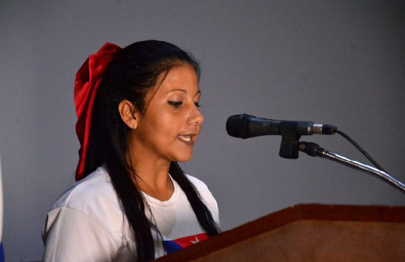 Milena Flores, funcionaria de la organización juvenil, agradeció —en nombre de los llamados "Pinos Nuevos"—, la solidaridad internacional y exhortó a mantener la motivación y la resistencia frente a la guerra económica imperialista, que debe cesar.