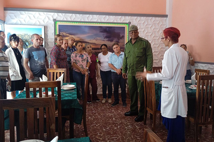 Mario Sabines Lorenzo, primer secretario del Partido Comunista de Cuba en la provincia de Matanzas, y Marieta Poey Zamora, gobernadora del Territorio, junto al General de División Raúl Villar Kessel, jefe del Ejército Central, constataron también el confort del nuevo restaurante para el colectivo laboral y acompañantes de pacientes ingresados.