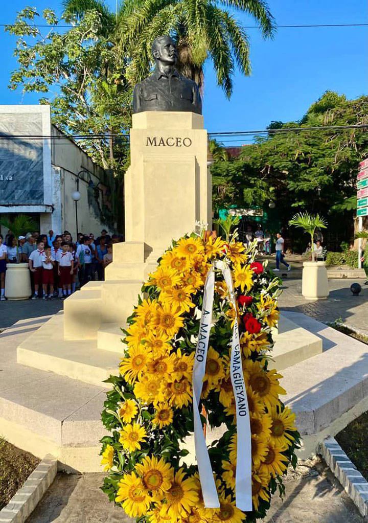 En la Plaza Maceo, de esta ciudad, tuvo lugar la conmemoración, con el depósito de una ofrenda floral en la estatua que inmortaliza la imagen del Titán de Bronce.