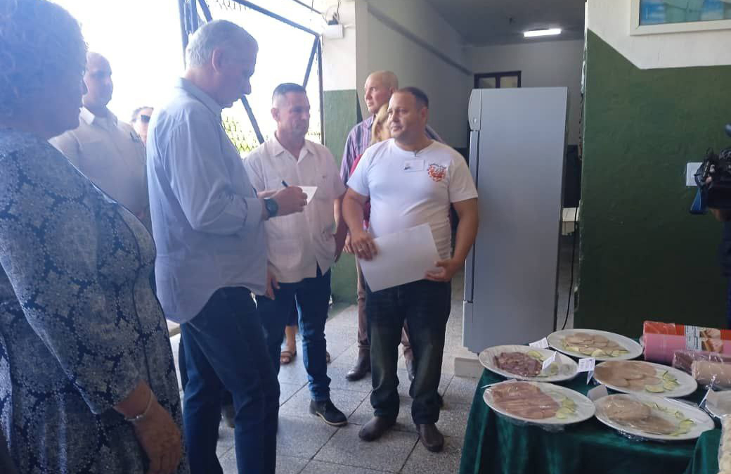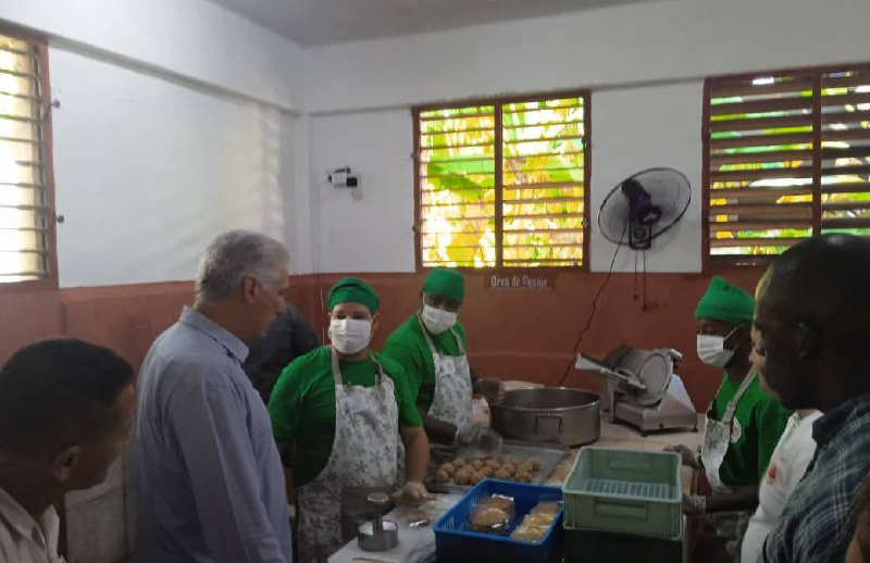 El presidente cubano examinó la muestra de productos en exhibición, recorrió los locales de elaboración e interactuó con el personal, el mandatario exhortó a aprender de esta experiencia, calificada como una cooperada única de su tipo, para potenciar el sector no estatal en beneficio del desarrollo local.