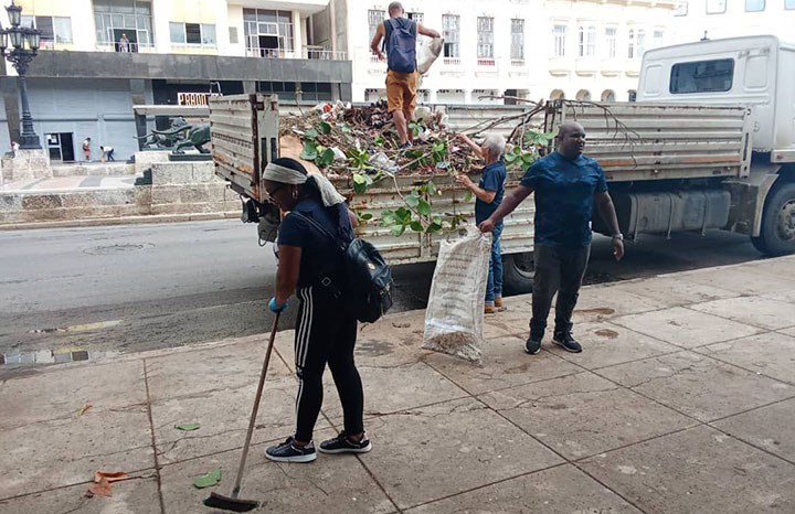 La acción, que contó con una amplia participación, abarcó áreas como el parque de los Enamorados, el de las Almendras, el que se ubica sobre el túnel de la ciudad e incluye la estatua ecuestre de Máximo Gómez y las inmediaciones de Prado y Malecón.