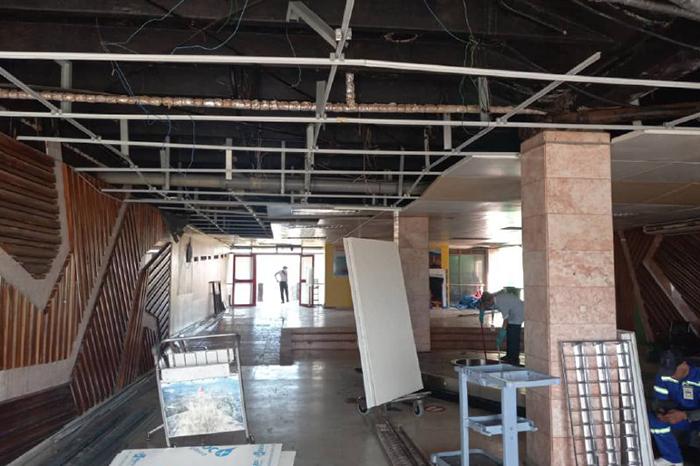 Ante las afectaciones provocadas por ese fenómeno meteorológico en el Aeropuerto Internacional Antonio Maceo, de Santiago de Cuba, obreros del área de inversiones de la terminal aérea de Camagüey se trasladaron hacia la ciudad indómita, donde permanecen aún y acometen faenas de reparación y mantenimiento, principalmente en el techo y falso techo de la institución.
