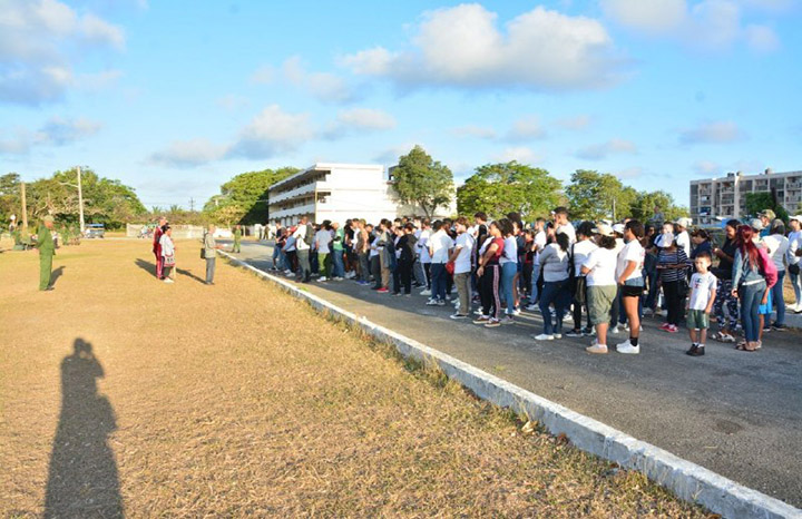 Hoy muchos de los que se encuentran aquí reciben entrenamiento donde oficiales de las Fuerzas Armadas Revolucionarias (FAR), apoyados en medios de enseñanza, preparan a los jóvenes para repeler posible agresión enemiga.