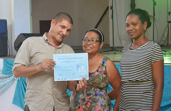 Durante la velada, Valdés Piñón y la directora de la Casa de la Cultura "Rita Montaner", Yamatsu Mora, entregaron reconocimientos por estos "125 años de Luz" a creadores, instituciones educativas, al maestro Oslé y al bisnieto de Rita, Erik Vázquez Fernández, invitado especial para la ocasión.
