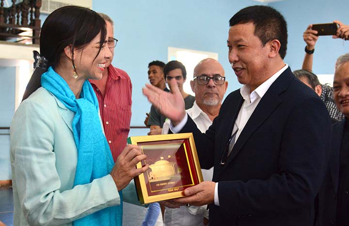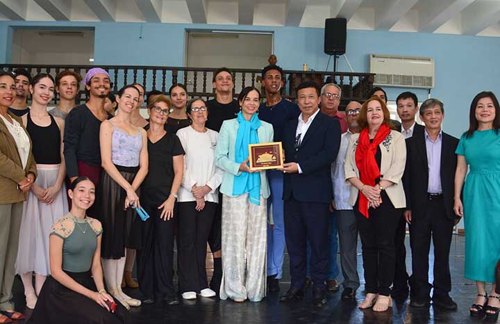 Más tarde, Cong Bay y la comitiva que le acompaña, fueron recibidos en la sede del Ballet Nacional de Cuba (BNC), donde su directora, la Maestra Viengsay Valdés, mostró las instalaciones en las que los profesionales de la especialidad practican, ensayan y sueñan cada personaje, tanto de ballets clásicos como contemporáneos; sobre todo los detalles últimos de la obra "Don Quijote" que en una nueva temporada subirá a escena en breve con motivo del aniversario 105 del natalicio de Alicia.