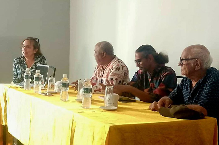 Al conversatorio asistieron y aportaron enjundiosas anécdotas y análisis histórico-culturales, el Premio Nacional de Teatro (2020), actor y director de Teatro de las Estaciones Rubén Darío Salazar; el infatigable veterano Julio Cordero, director de recordados programas de televisión dedicados a la infancia; así como Erick Mota, director de la Editorial Gente Nueva.