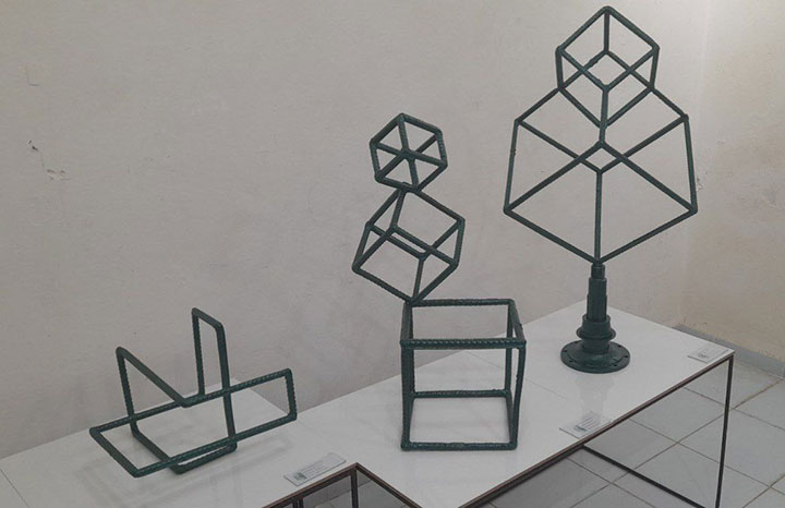 Rodríguez Castellanos, también curador de Hephaestus, explicó que Luis Yoel Batista Pérez apuesta por el metal reciclado y la chatarra, y logra piezas donde la forma original del material dicta soluciones visuales que oscilan entre estructuras arquitectónicas y composiciones que retan la imaginación sin exceso ornamental.