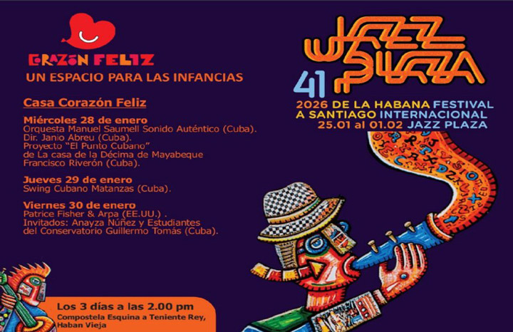 La Habana, 23 ene (ACN) La Casa Corazón Feliz, dirigida por la cantautora Rochy Ameneiro, se incorpora por primera vez al Festival Jazz Plaza con un espacio dedicado a las infancias, orientado a la formación de públicos y al acercamiento temprano al jazz a través de conciertos e intercambios musicales.
