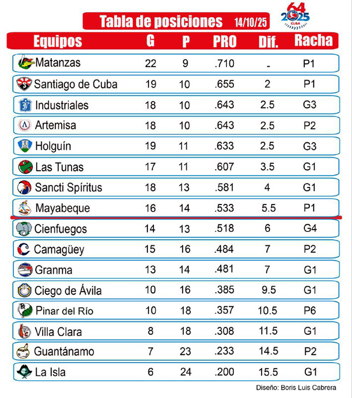 En otros resultados los Piratas de La Isla vencieron 4-3 a los Vegueros de Pinar del Río y los Alazanes de Granma 8-4 a los Indios de Guantánamo, con un bambinazo con los ángulos congestionados de Leonardo Alarcón y otro Yulieski Remón con los sacos vacíos. Por los derrotados se llevó las cercas Robert Luis Delgado.