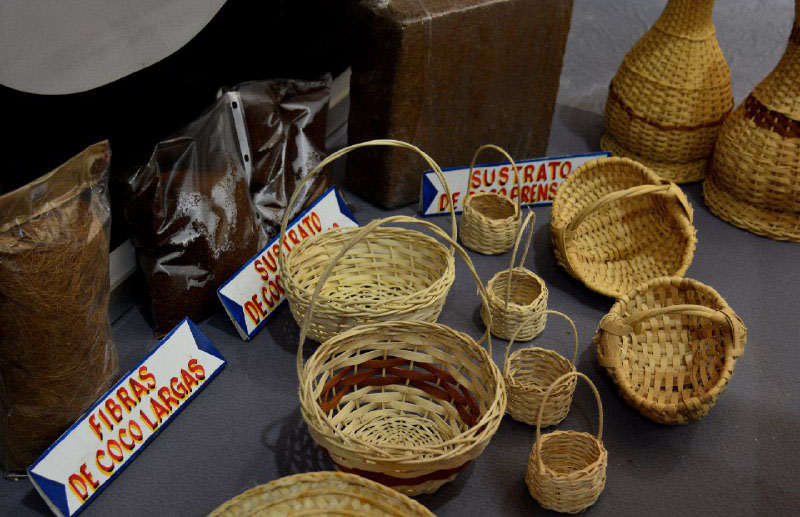 Detalló que entre las variedades que se exponen en el estand de la provincia se encuentran alimentos y otros derivados del coco, entre ellos las fibras largas y el sustrato de este fruto, que se utilizan en la tapicería y en la agricultura, respectivamente.