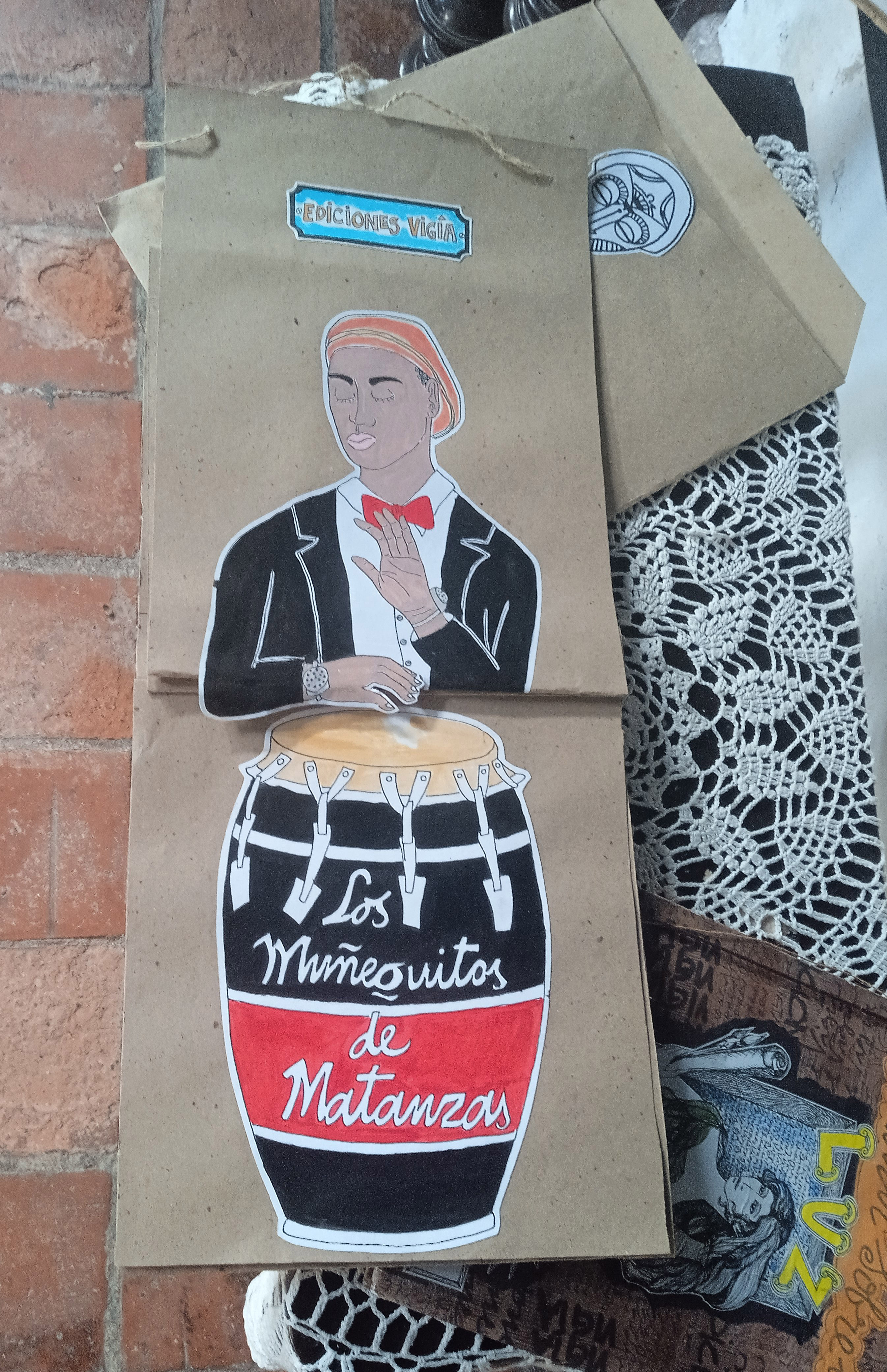 Héctor Rivero lo diseñó con mucho amor –dice Agustina- lo hizo con la idea de que el pergamino luzca como un cuadro que colgado muestra a un músico con sus manos dispuestas a tocar el tambor, y que al abrirse comparte la letra de la pieza que trascendió como Los Muñequitos.