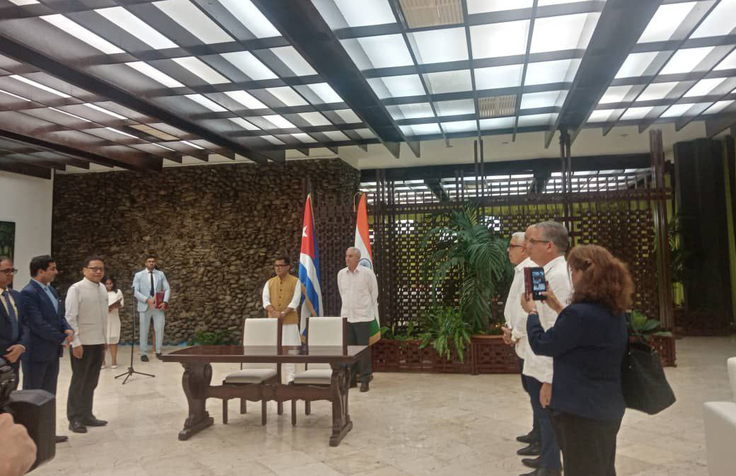 La rúbrica selló un encuentro entre Pabitra Margherita, ministro de Estado para Asuntos Exteriores y Textiles de la India, quien realiza una visita oficial a Cuba, y Gerardo Peñalver Portal, ministro A. I. cubano de Relaciones Exteriores.